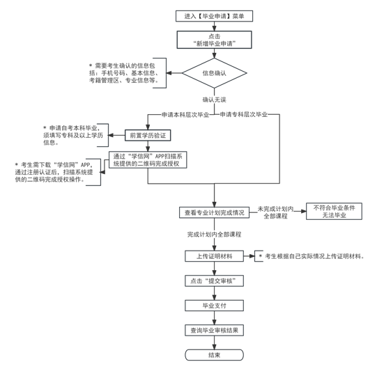 2. 考生在申请毕业时个人信息要保证准确无误(包括姓名、身份证号、性别、出生日期等),如有变动或错误须及时联系所属考籍管理区提出申请并进行现场确认;